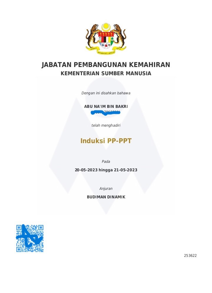 Budiman Dinmaik Sdn Bhd / Academy For Human Capital (L02174) akan menganjurkan kursus Sijil Latihan Tenaga Pengajar (Train The Trainer) (NCS-004:2017) secara hybrid gabungan atas talian dan bersemuka pada 22 - 26 Mei 2023. Kepada yang berminat, boleh hubungi kami melalui 019-236 4850 / This email address is being protected from spambots. You need JavaScript enabled to view it.. Pendaftaran juga boleh dibuat dengan mengisi google form Train The Trainer, 22 - 25 Mei 2023. Pendaftaran perlu dilakukan sebelum 8 Mei 2023.